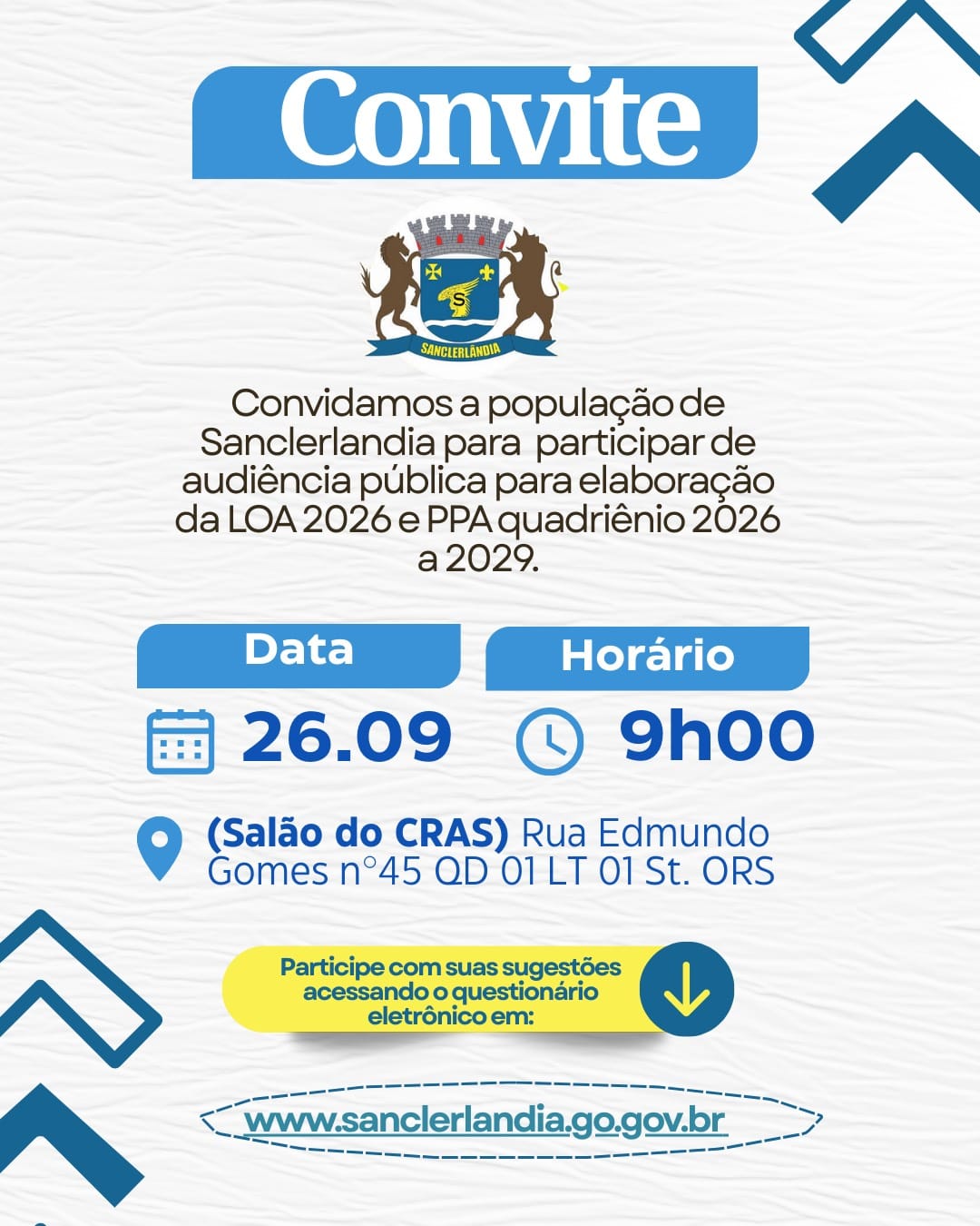 Colabore com sugestões para o orçamento municipal. Para preencher o formulário, CLIQUE AQUI.